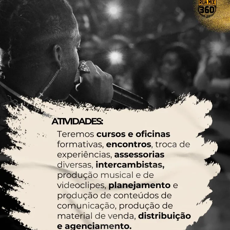 Com o objetivo de impulsionar a cena do rap nas periferias de Goiânia, o projeto Rua Mix 360 foi aprovado via Lei de Incentivo à Cultura (Pronac 244704), e tem o Instituto Catalise como parceiro estratégico em sua execução. A iniciativa, idealizada por Raphael Gustavo da Silva (É Nois KiTa Produções e Eventos), busca estruturar de forma inédita toda a cadeia produtiva do hip hop local, oferecendo formação, assessoria e oportunidades reais para artistas, produtores e agentes culturais periféricos.